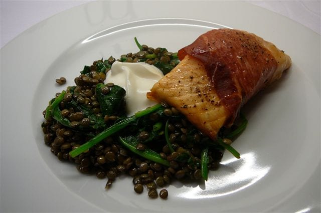Salmon with lentils